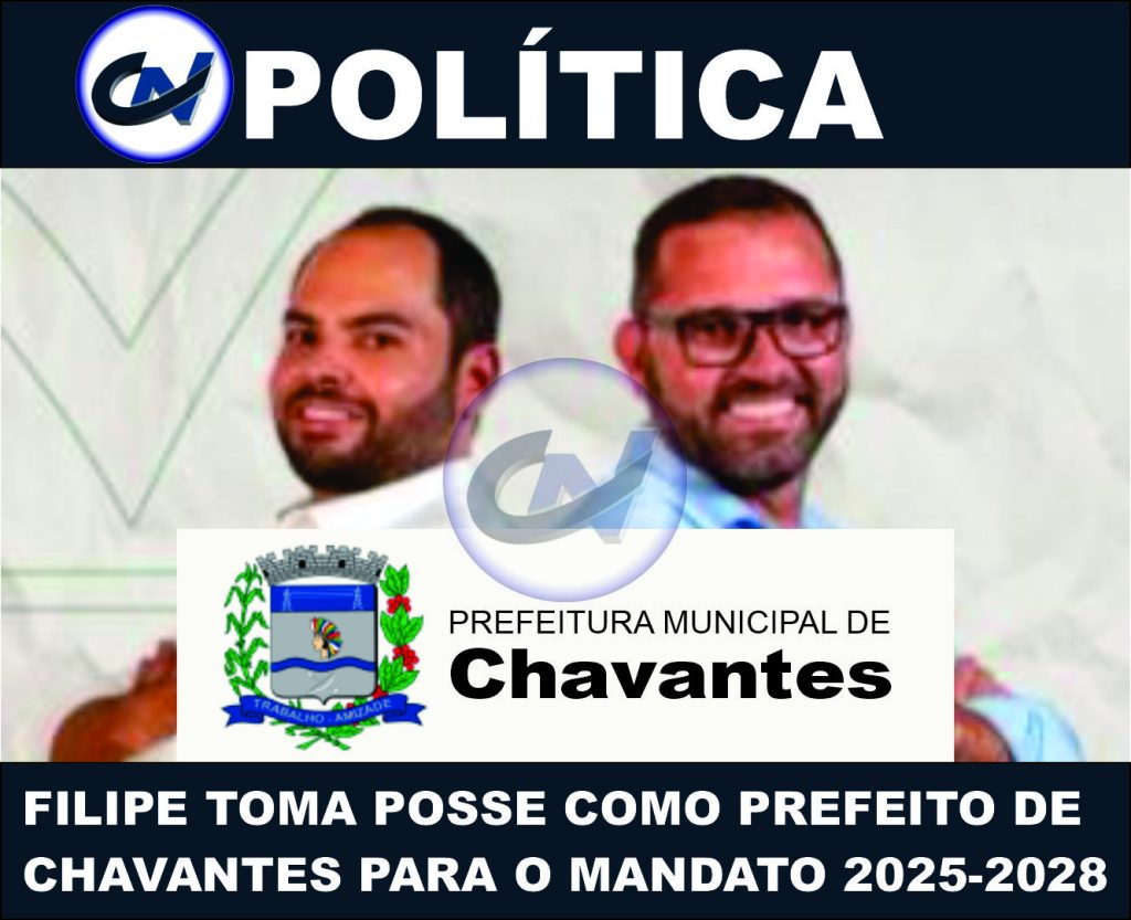 Luiz Filipe de Paula Jacinto, de 35 anos, toma posse nesta quarta-feira (1º) como prefeito de Chavantes para o mandato 2025 a 2028, ao lado do vice-prefeito José Ricardo Nabero (Kadão), de 48 anos. Filipe possui uma trajetória política de oito anos, tendo sido vereador por quatro anos e vice-prefeito nos últimos quatro anos, ao lado do ex-prefeito Márcio Burguinha. Com essa experiência, Filipe conhece profundamente a administração pública e os desafios que a acompanham. É um grande desafio, mas ele tem tudo para alcançar sucesso.