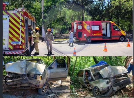 Ambos ficaram presos no interior do veículo. As equipes do Corpo de Bombeiros precisaram usar ferramentas especiais para cortar a lataria e retirar as vítimas com segurança.