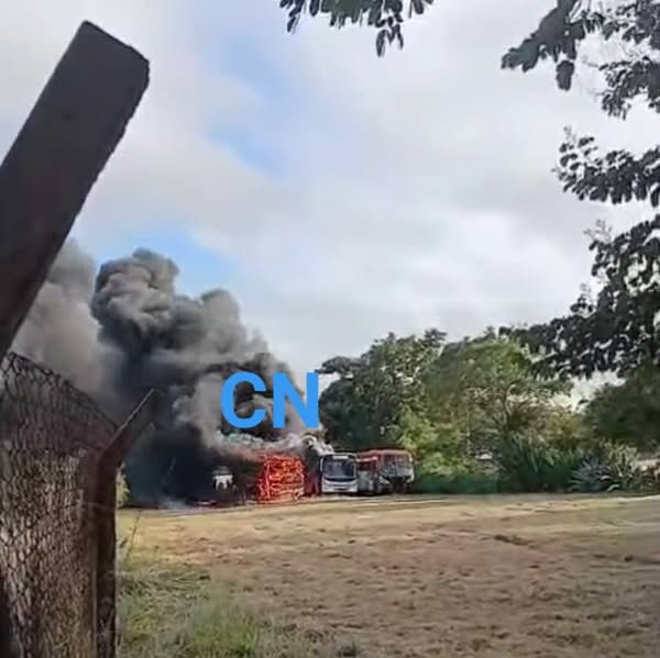 Um incêndio consumiu três ônibus na manhã deste sábado (5), em Jaú. Os veículos estavam estacionados em um terreno ao lado da garagem da empresa, no bairro Jardim Nova Jaú.