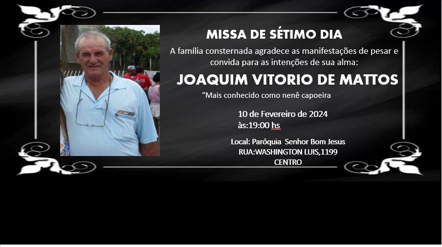 Missão de Sétimo Dia A família de Oscar Toledo Leme convida para a Missa de Sétimo Dia...
