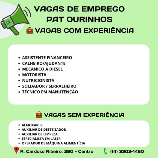 Estamos divulgando diversas vagas de emprego na região de Ourinhos, tanto para profissionais com experiência quanto para...