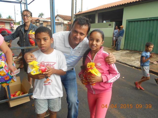 O Prefeito Luizão e o vice Serginho, fizeram questão de participar nos dois momentos e entregar pessoalmente os ovos para os alunos nas escolas e nos vários bairros da cidade.