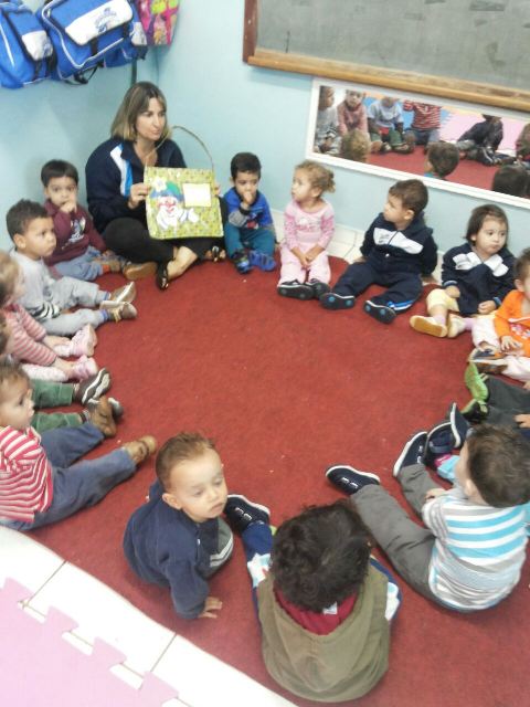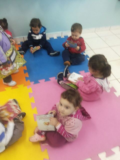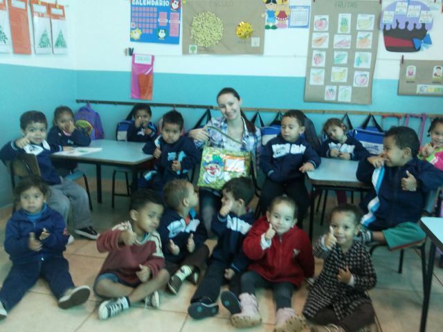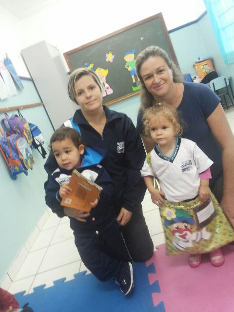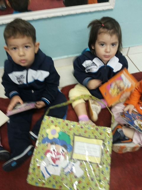 No primeiro momento, em reunião com os pais, explicamos sobre o projeto para este 2º bimestre. Projeto, que contém uma sacola personalizada com um livro infantil. Que será levada para casa, onde os pais iram contar a historia para seu filho, e ao retornar à escola a criança na roda de conversa contará a historia as coleguinhas.
