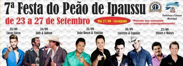 Com rodeio em touro, tradicional cavalgada, praça de alimentação e grandes shows musicais.
