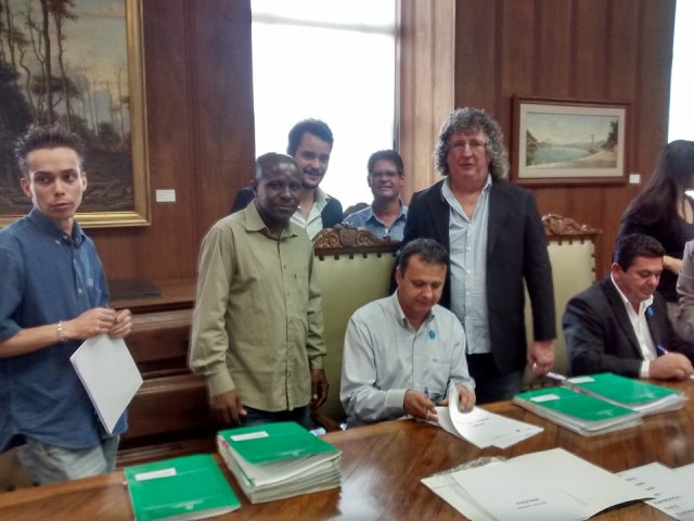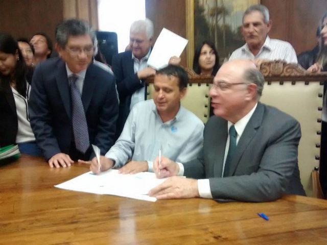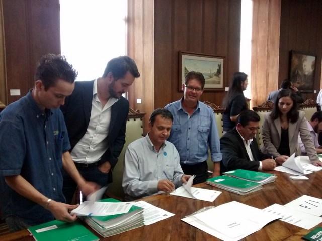 O Prefeito Luiz Carlos Souto “Luizão”, o Vice-prefeito Sergio Galvanin Guidio Filho “Serginho” acompanhados do vereador Eduardo de Souza Alves “Pelezinho” e do Diretor Municipal de Turismo, Celso Costa, estiveram na terça-feira, 15/09/2015, no Palácio dos Bandeirantes, em São Paulo, onde efetuaram a assinatura do convênio do Programa Melhor Caminho, da Secretaria de Agricultura e Abastecimento do Estado de São Paulo, que será executada pela CODASP – Companhia de Desenvolvimento Agrícola de São Paulo na estrada que dá acesso ao Camping Municipal de Ipaussu.