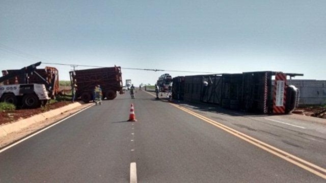 Segundo ainda, o condutor do caminhão A.L.S., 41 anos, com ferimentos leves foi socorrido pela Unidade de Resgate da Concessionária.