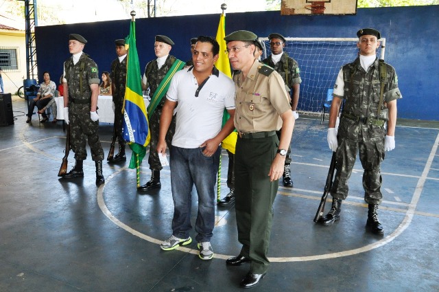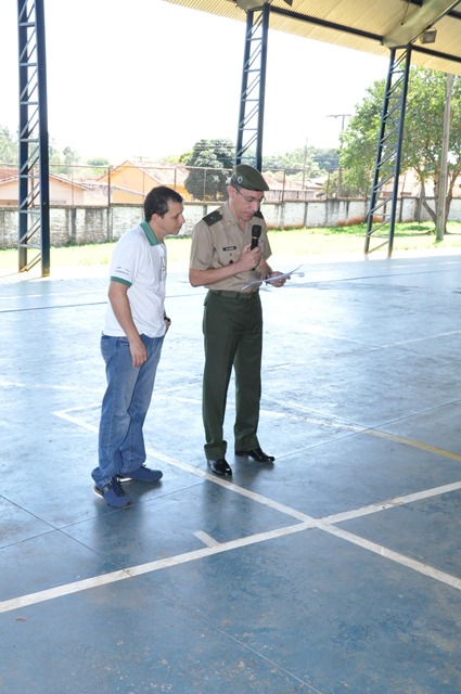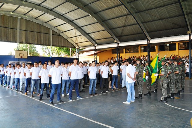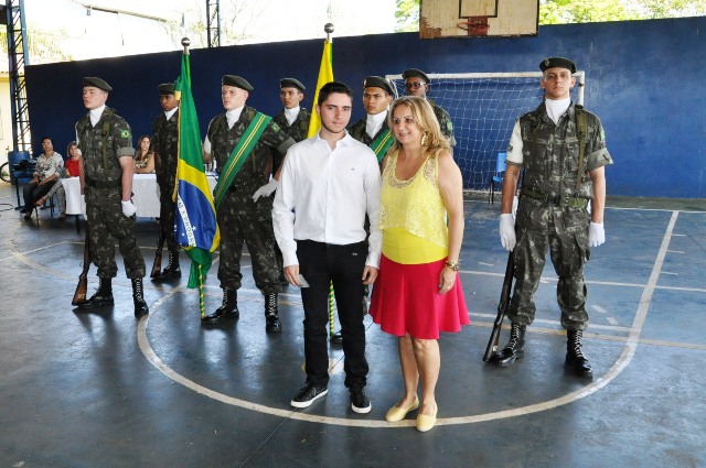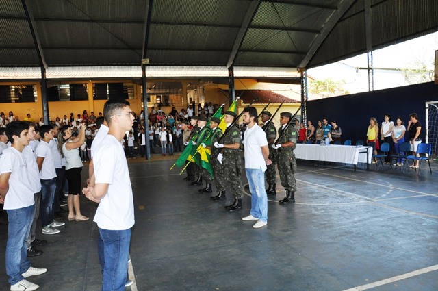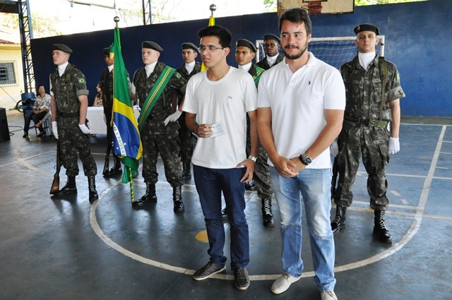 Na manhã desta segunda-feira, 21/09/2015, cerca de 400 pessoas entre autoridades, convidados e familiares participaram do evento que foi realizado na quadra de esportes da Escola Municipal Prof. Julio Mastrodomênico, na presença do Delegado de Serviço Militar da 14ª Del. SM de Ourinhos – 2º Tenente Dilmarque Mariano da Silva, do Vice-prefeito Sergio Galvanin Guidio Filho “Serginho”, que é a presidente legal da Junta do Serviço Militar do Município de Ipaussu; Valdinéia, chefe da Junta do Serviço Militar, Marlene C. A. Pereira, Secretária de Educação e Cultura, dos Diretores das Escola Municipais, Ana Paula, Melissa, Márcia, Maria Augusta, Vera Lucia, Felipe Miguel e Lucelia Cristina, responsável pelo R.H., uma nova turma de 88 jovens, nascidos em 1997 e anos anteriores, participaram da Solenidade de Juramento à Bandeira Nacional, momento esse em que prestaram juramento e receberam o certificado de dispensa do Serviço Militar.