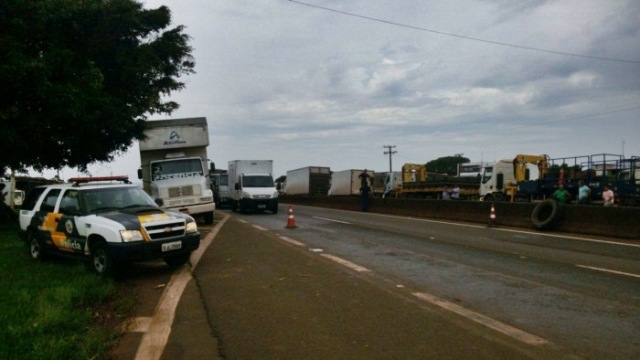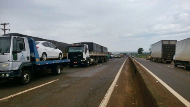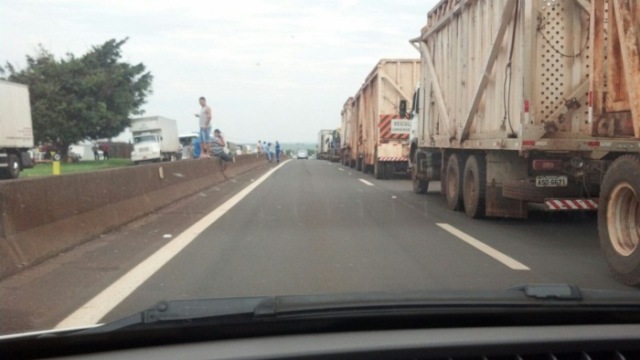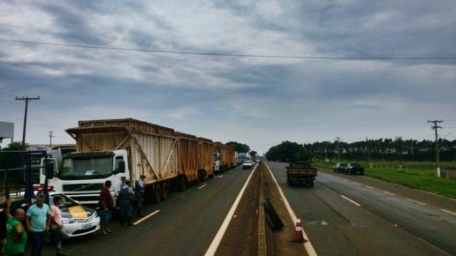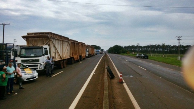 Na manhã desta segunda feira, 09/11/15, caminhoneiros que aderiram o movimento de paralisação das rodovias, bloquearam um trecho da Rodovia Raposo Tavares (SP 270) no Km 384 defronte o Sukinho do Japonês já na divisa de município de Ourinhos com Salto Grande.