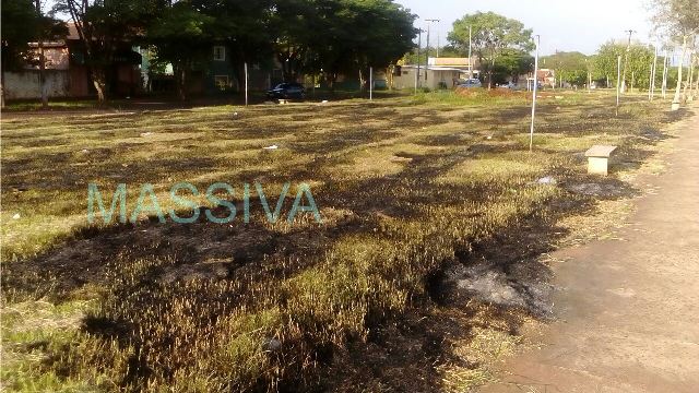 Funcionários da Prefeitura realizaram serviços de roça nas gramas há uma semana e não retiraram as gramas roçadas, até a data do incêndio.