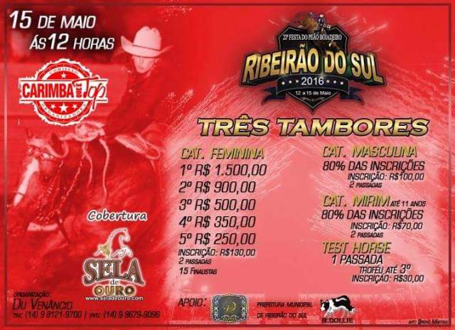 Em comemoração aos 51 anos da cidade de Ribeirão do Sul acontecerá nos dias 12,13,14 e 15 de Maio a XXIII Festa do Peão de Boiadeiro com as seguintes atrações