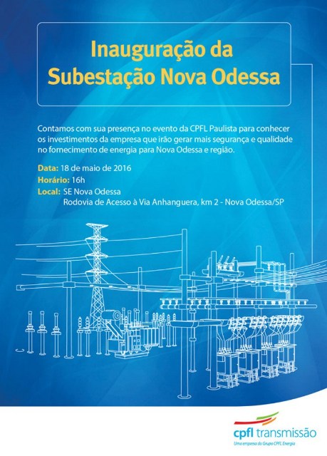 Campinas, 16 de maio de 2016 – Na próxima quarta-feira, 18 de maio, o presidente da CPFL Paulista, Carlos Zamboni Neto, receberá o prefeito Benjamim Bill Vieira de Souza e representantes do Poder Executivo de Nova Odessa para a inauguração das obras de ampliação de uma das subestações da cidade. Trata-se de um importante investimento que beneficiará diretamente o fornecimento de energia para 19 mil clientes.