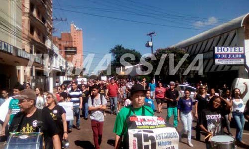 Os professores que compareceram na praça fizeram caminhada pelas ruas de Ourinhos e foram até a porta da Secretaria da Educação.