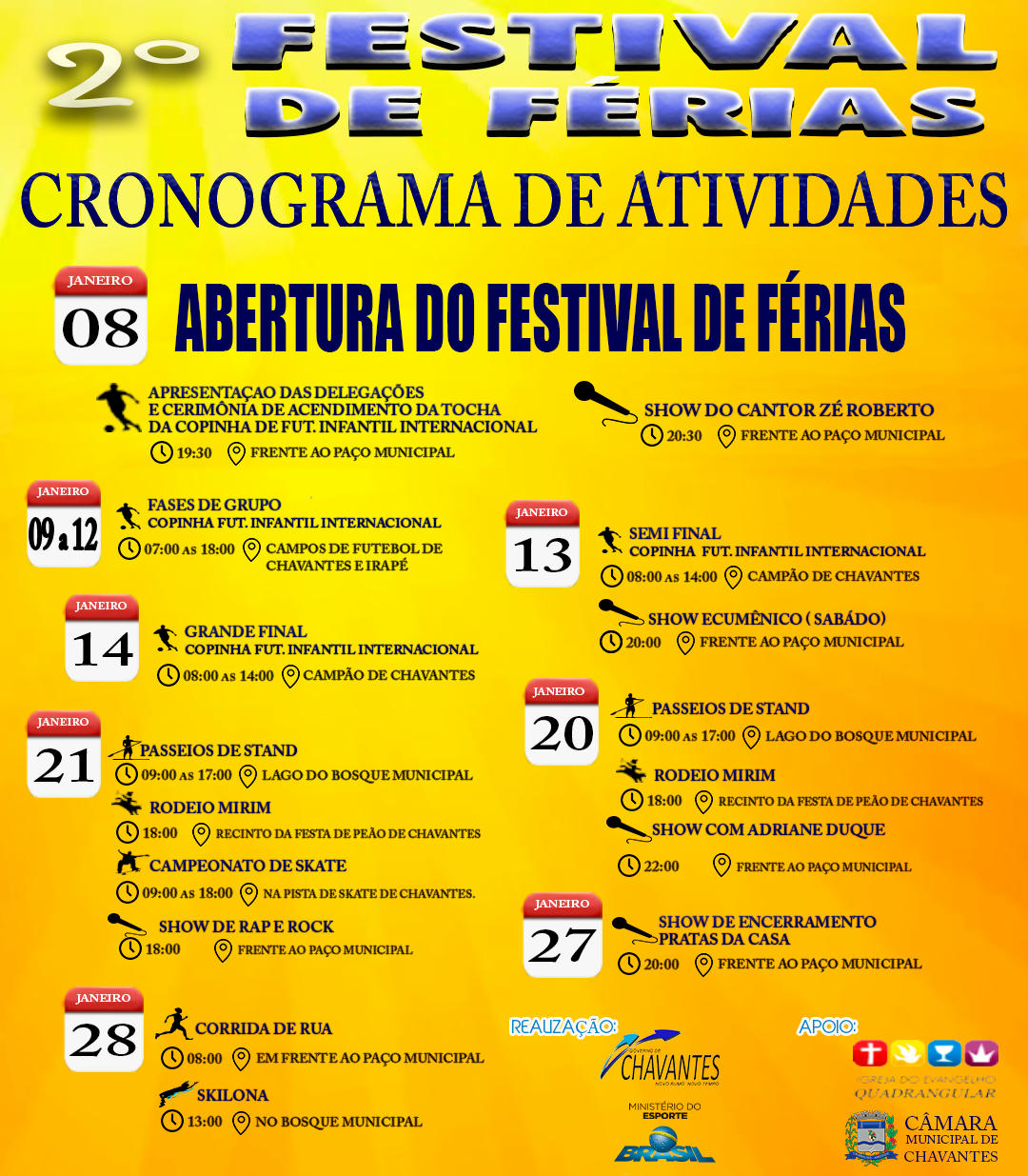 Realização: Prefeitura Municipal de Chavantes através da Secretaria de Cultura/Turismo/Esporte/Lazer e Ministério do Esporte.