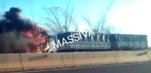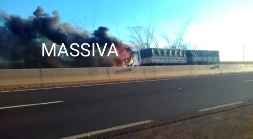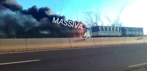 Após um possível “pane elétrico”, caminhão pega fogo próximo ao Restaurante Recanto de Minas em Ipaussu.