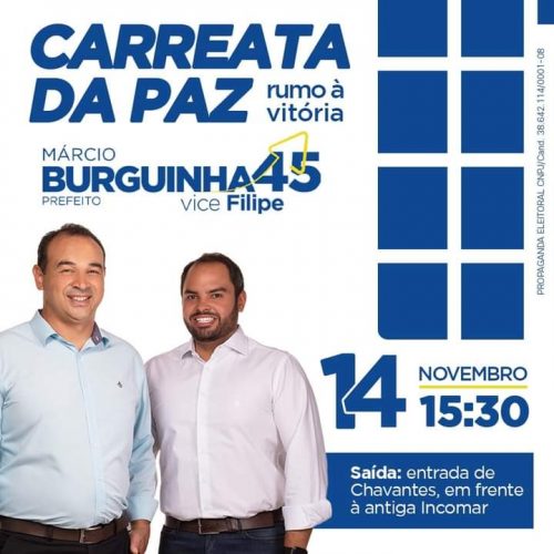A Carreata que apoia BURGUINHA e Filipe acontecerá às 15 horas e 30 minutos com saída da antiga Incomar.