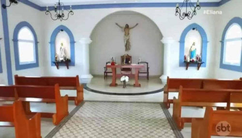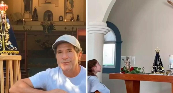 A capela localizada na área externa da casa do famoso é grande, aconchegante e conta com uma imagem de Nossa Senhora cercada de anjos pintada no teto.