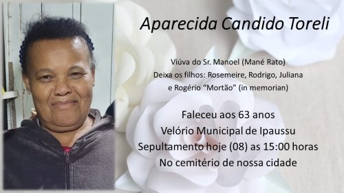 Aos familiares e amigos, os nossos mais sinceros sentimentos e que Deus conforte a todos neste triste momento.