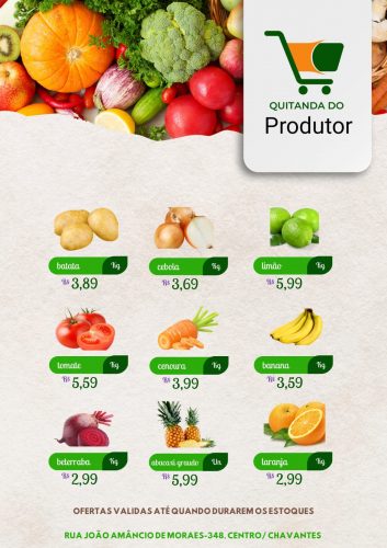 Trabalhamos com legumes e verduras, vindo diretamente da fazenda onde são cultivados por nós.