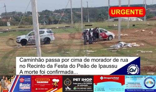 Caminhão passa por cima de morador de rua no recinto da festa de Ipaussu; homem estava deitado embaixo de uma lona e morreu no local.