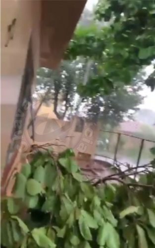 A chuva “veio acompanhada” de fortes rajadas de vento, o que contribuiu com a queda dessa árvore e vários desligamentos da energia elétrica em alguns pontos da cidade.