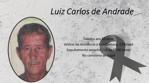 É com imenso pesar que comunicamos o falecimento do Senhor Luiz Carlos de Andrade, aos 52 anos de idade.