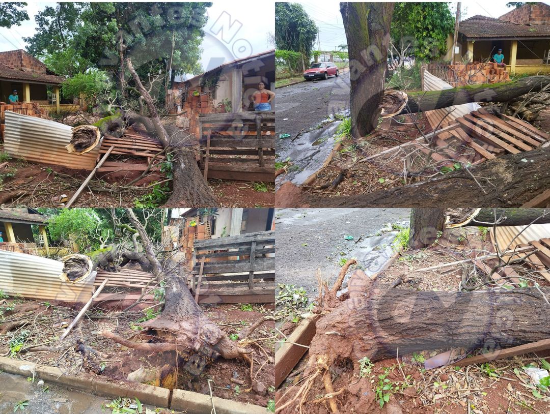 Na tarde desta quinta-feira 12/10/2023, um vendaval derrubou muros descobriu casas e derrubou arvores