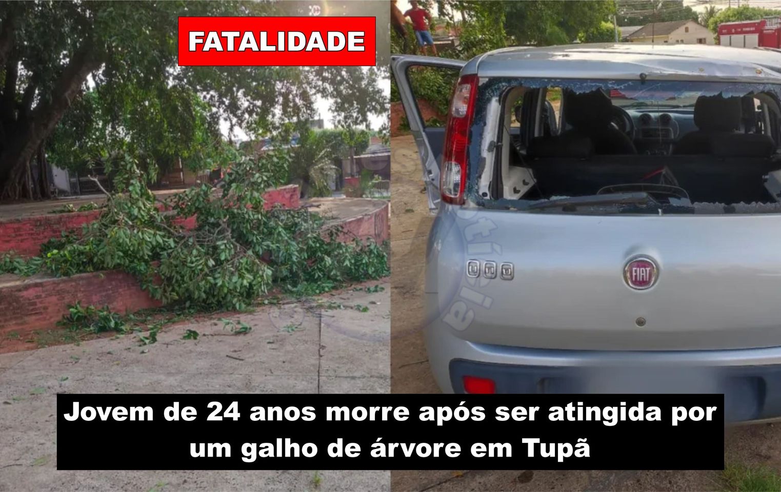Uma mulher morreu após ser atingida por um galho nesta quinta-feira (12) na Praça da Figueira em Tupã (SP).
