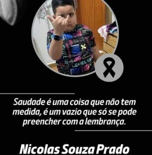 Faleceu neste sábado (14), aos 6 anos de idade, o pequeno Nícolas Souza Prado.