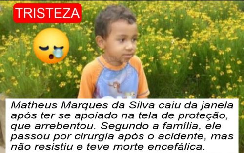 Matheus Marques da Silva caiu da janela após ter se apoiado na tela de proteção, que arrebentou. Segundo a família, ele passou por cirurgia após o acidente, mas não resistiu e teve morte encefálica.