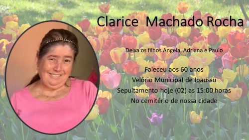 Nossas condolências à família de Clarice. Que todos encontrem forças e apoio mútuo para lidar com essa perda tão dolorosa. Que a memória de Clarice seja sempre lembrada com carinho e amor.