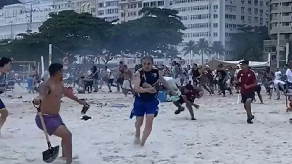Torcedores de Fluminense e Boca Juniors entraram em confronto na Praia de Copacabana, no Rio de Janeiro, na tarde desta quinta-feira (2). Imagens da pancadaria nas areias foram divulgadas por torcedores dos dois clubes nas redes sociais. A Polícia Militar precisou usar bombas de efeito moral para dispersar argentinos e tricolores.