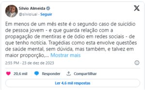 Na última sexta-feira, em publicação no Instagram, a mãe de Jéssica confirmou a morte da jovem, e associou o fato aos comentários e notícias falsas vinculados à estudante.