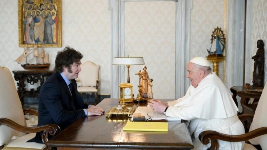 Buscando melhorar sua imagem com o eleitorado conservador argentino, Javier Milei visitou o Papa Francisco no Vaticano
