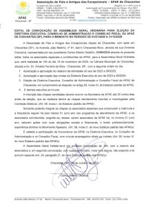 A Associação de Pais e Amigos dos Excepcionais (APAE) de Chavantes convoca todos os associados, pais e contribuintes para participarem da Assembleia Geral Ordinária, que terá como pauta: