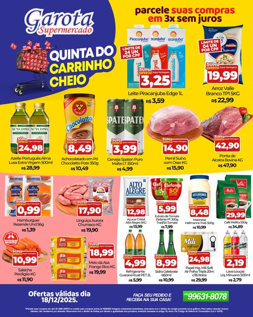 “Quinta do Carrinho Cheio” Ofertas válidas para o dia 18/12/2025 Venha conferir e economizar $$$ Faça o...